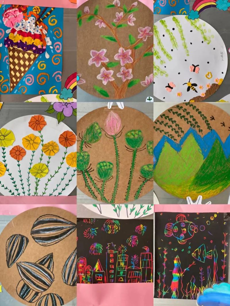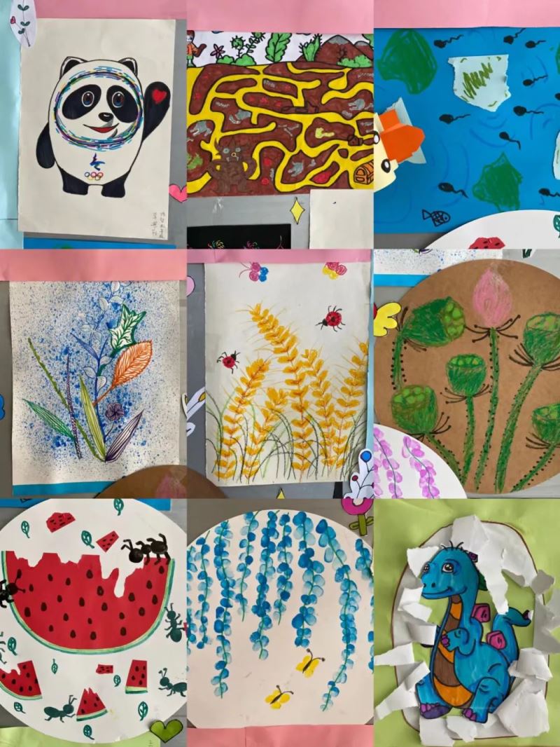 活动展示的作品形式多样、富有个性和创意特色,一幅幅绘画作品展现了孩子们积极向上的精神风貌,渗透着孩子们丰富的想象、大胆的创意、充满了童真童趣。绘画不仅培养了学生的动手能力,还通过动作练习增强手部小肌肉的力量,促进手臂、手腕、手指协调配合能力和手眼协调能力。看似一幅简单的作品,背后却凝聚了老师和学生们的诸多心血与汗水。展示活动中,各班主任带领孩子们有序地参观着,一幅幅色彩亮丽的作品,深受孩子们的喜爱。